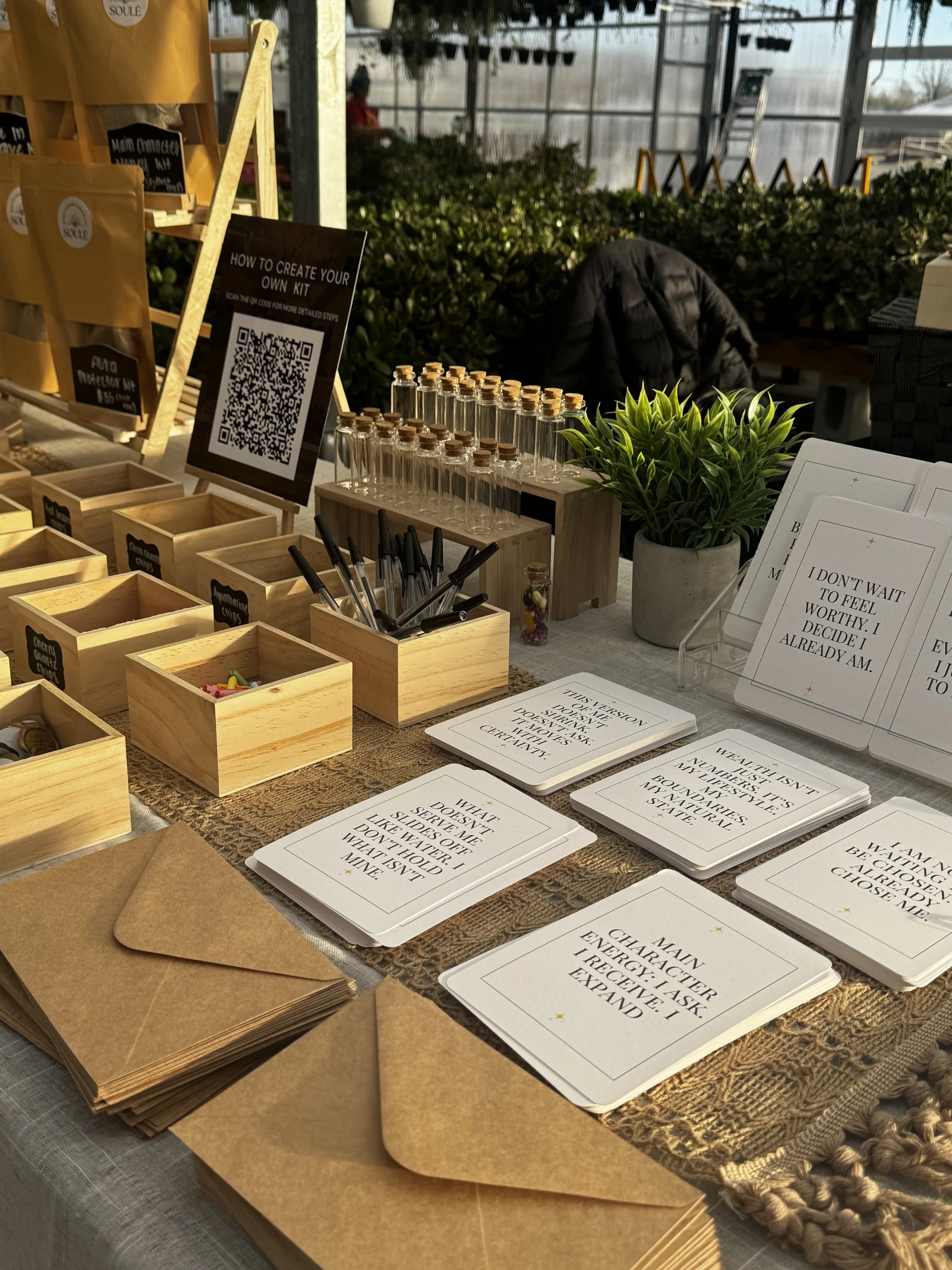 Bring the Soulé DIY Ritual Kit Bar to your event for a beautiful, intentional, and interactive experience. Each guest creates their own custom ritual kit with crystals, incense, affirmation cards, intention jars, and more, all guided and curated by Soulé.
